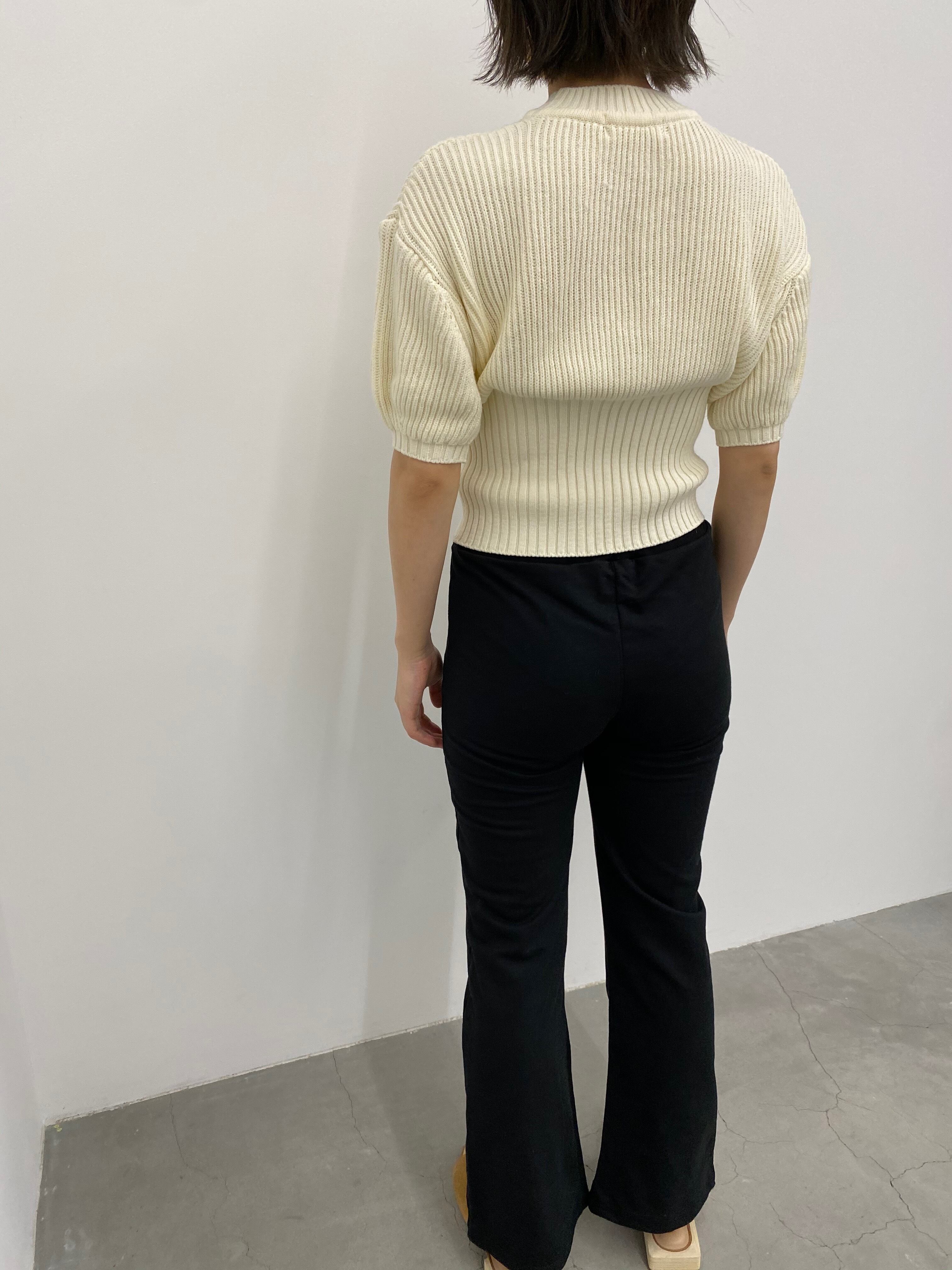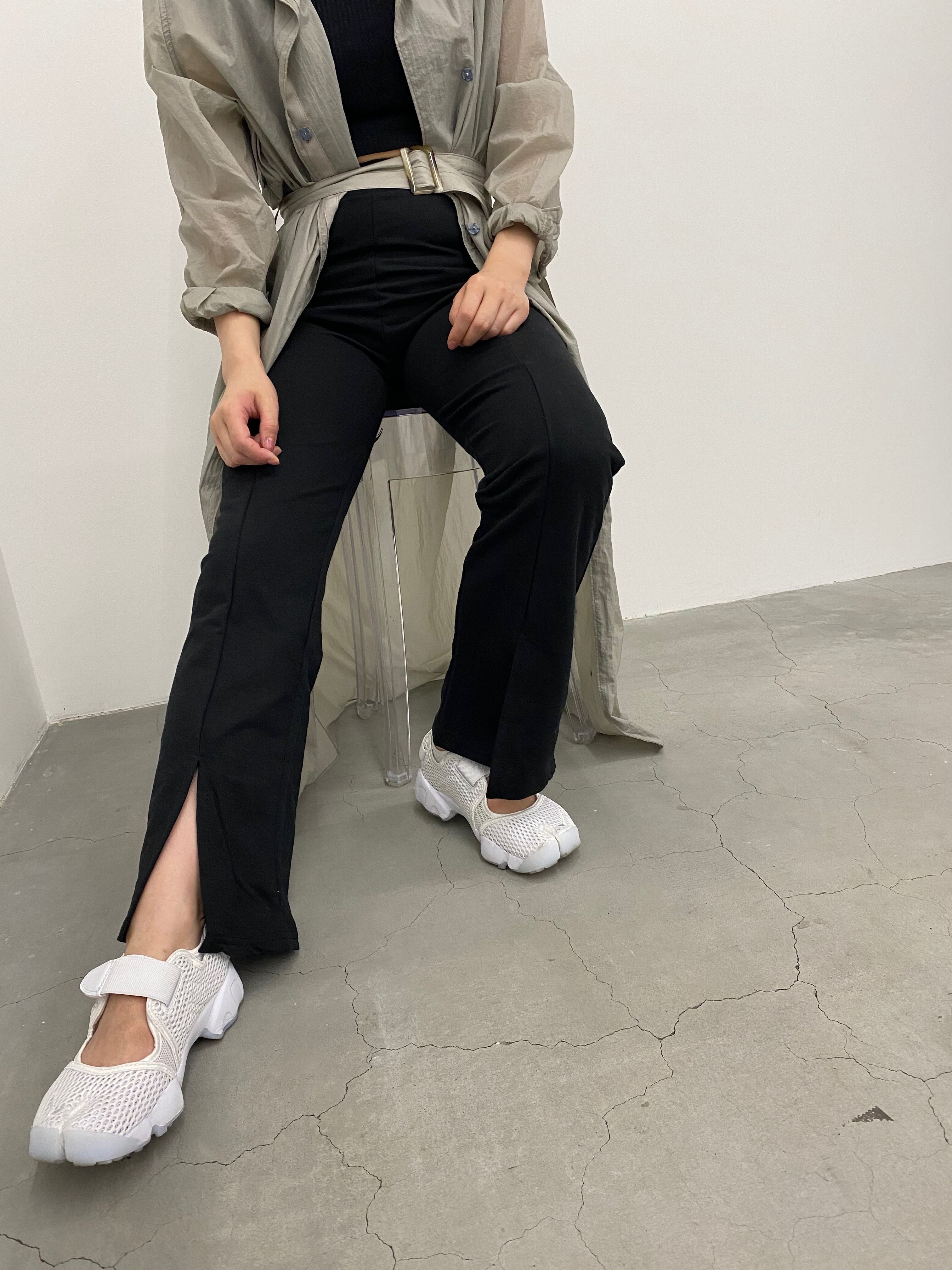 ウエスト部分がゴム仕様になっておりストレッチも効いてるため履き心地抜群でリラックスして履いていただけます。裾に向かってフレアが広がるっているので美脚効果もあります。