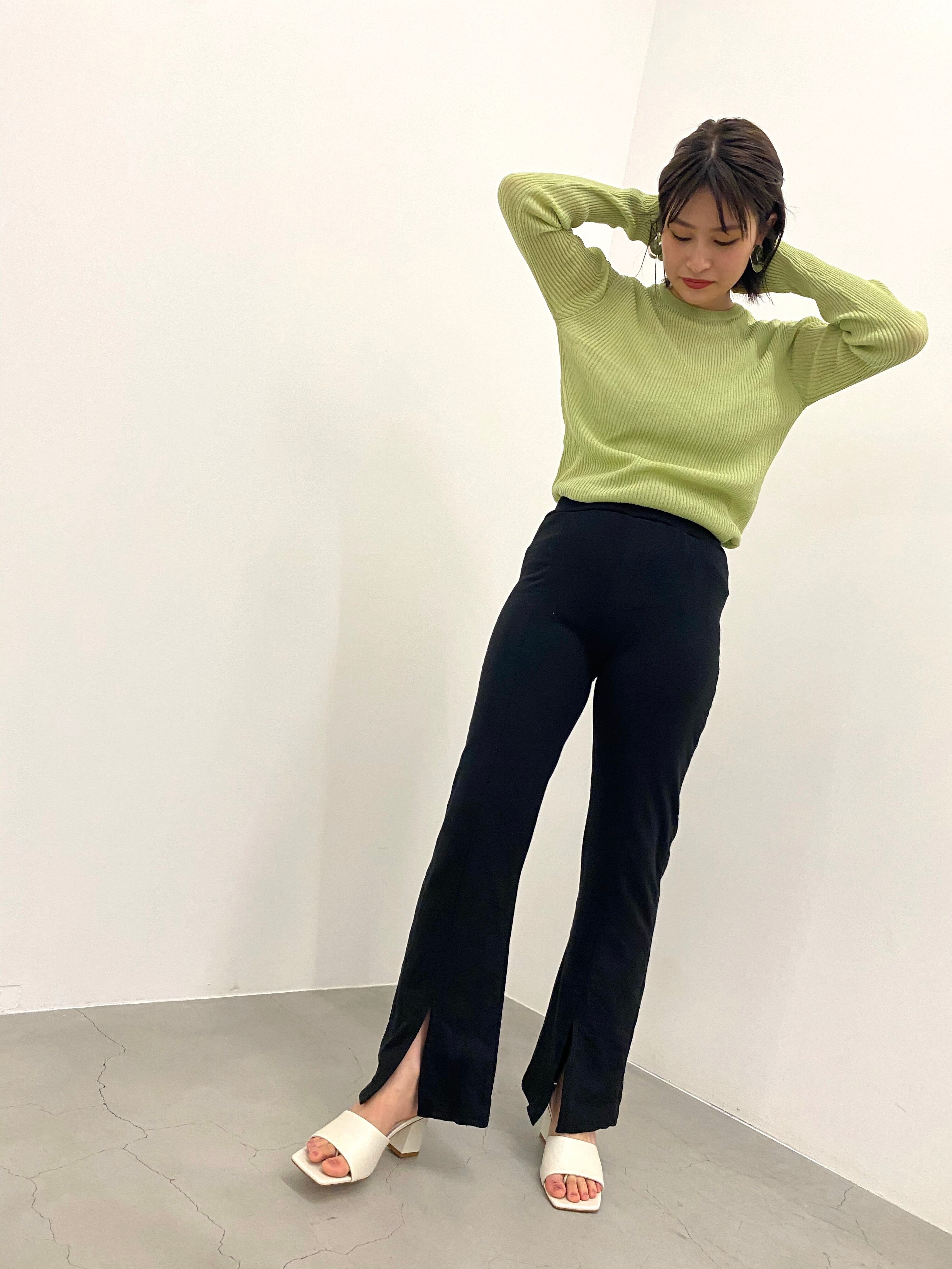 首元が詰まっているので、透け感があるものの、程よくきれいめに着ていただけます。インナーにブラトップやチューブトップなどを着て涼しげでいやらしくないコーディネートが完成します。