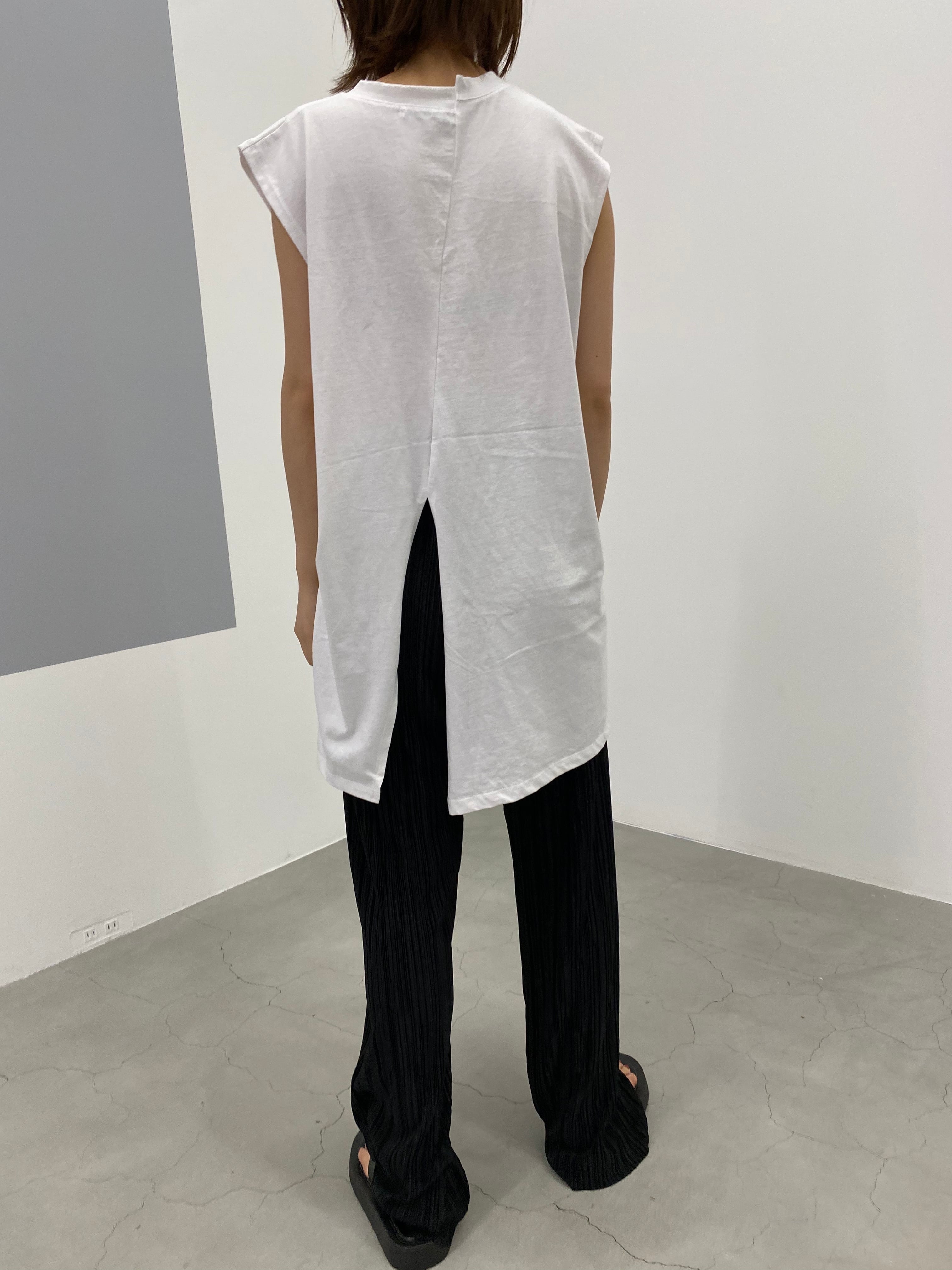 バックに大きく入ったスリットがポイントのタンクトップ。