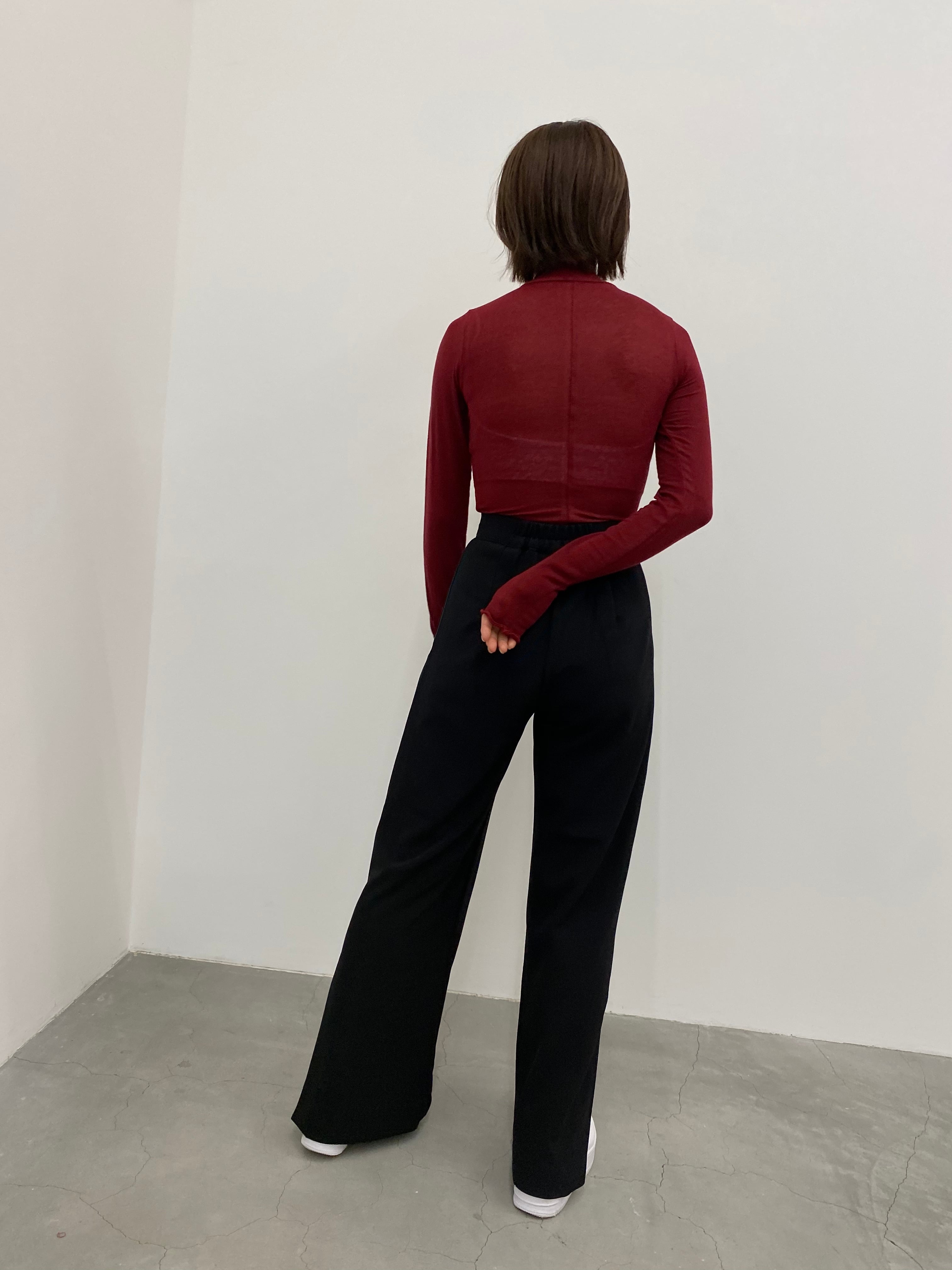 パンツの形がとても綺麗でサイドにスリットが入っているので、抜け感が出ておしゃれです。配色も大人っぽく他のアイテム邪魔せずポイントになる1着になります。ウエストの後ろがゴム仕様になっているのでストレスなく着ていただけます。