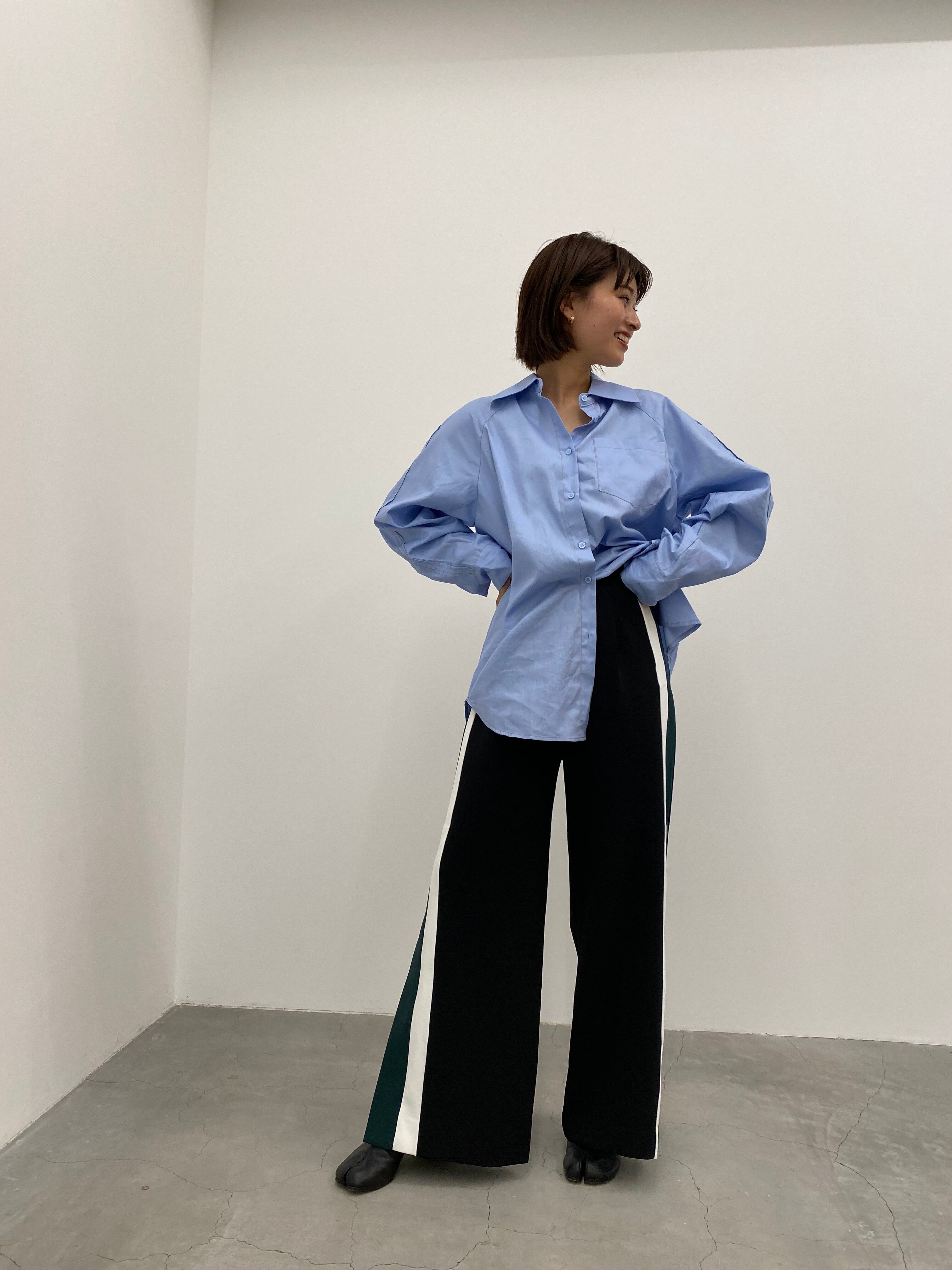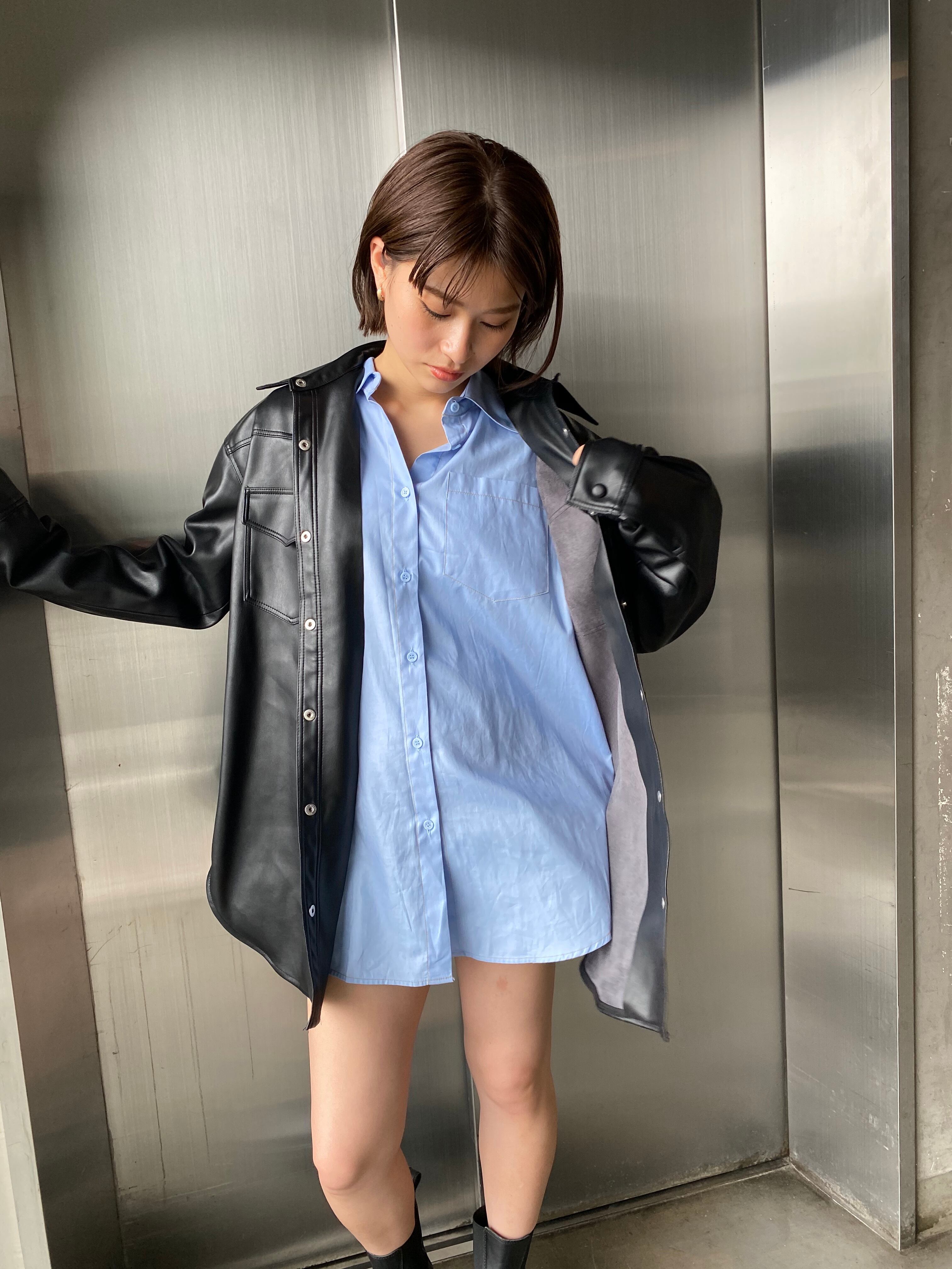 シンプルなシャツですがさり気ないステッチが他にない一枚です。ワンピース風にもワイドパンツとコーディネートしても◎