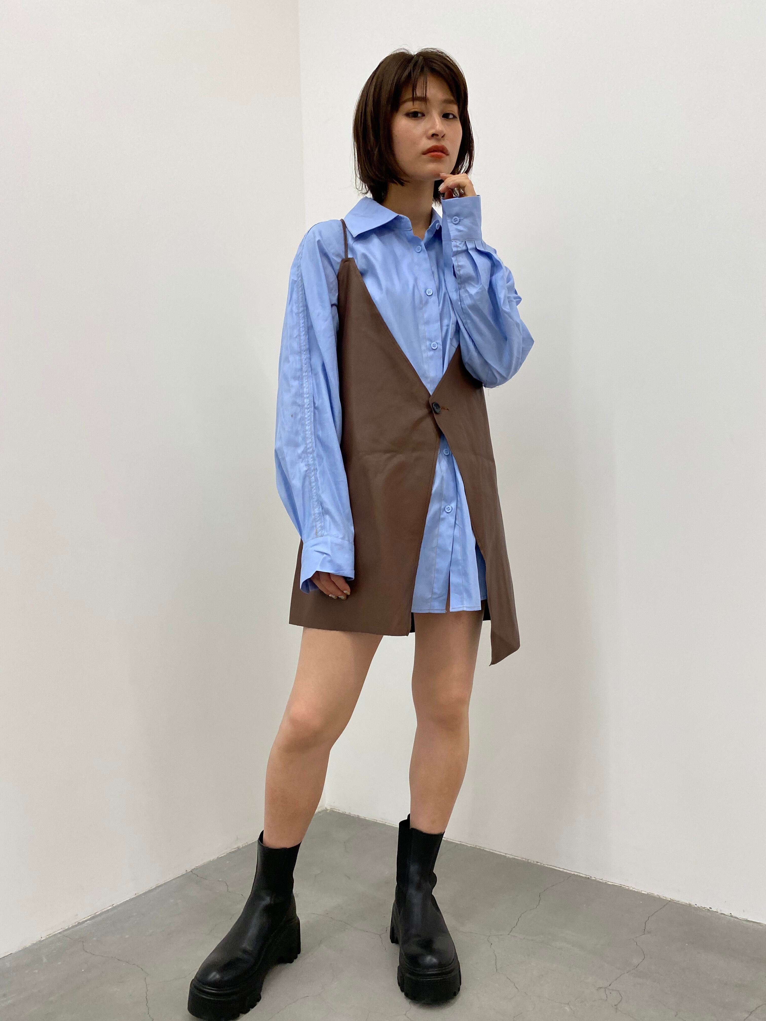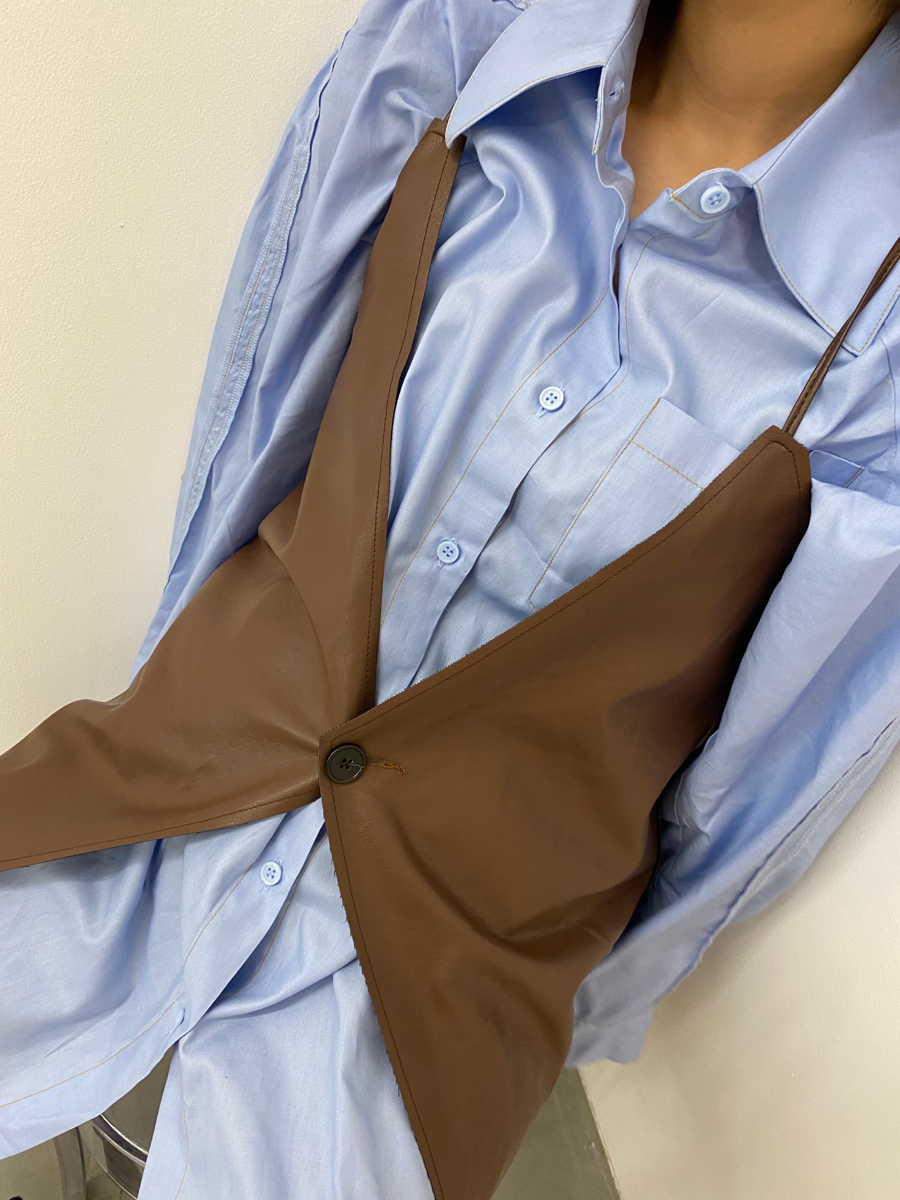 シャツにレイヤードするなどコーディネートのポイントになってくれます。ストラップはご自身で結んでいただけるので、紐をクロスにしたり、サイズ感を調整したりと自由自在にお使いいただけます。