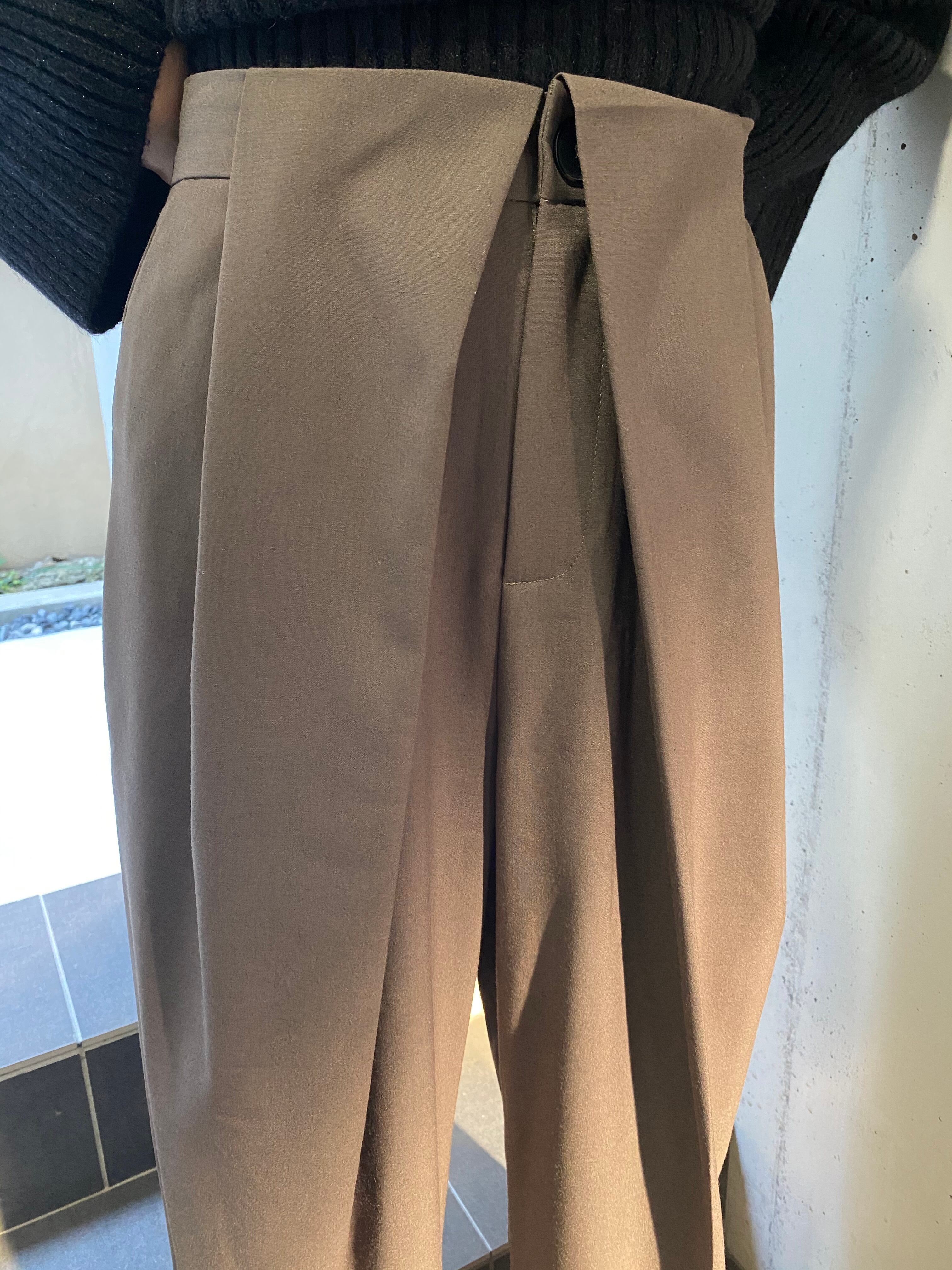 フォーマルにもカジュアルにも使える万能パンツになります。ウエスト部分からタックが大胆に入っているのでお腹周りも目立ちにくく、スタイルアップできます。