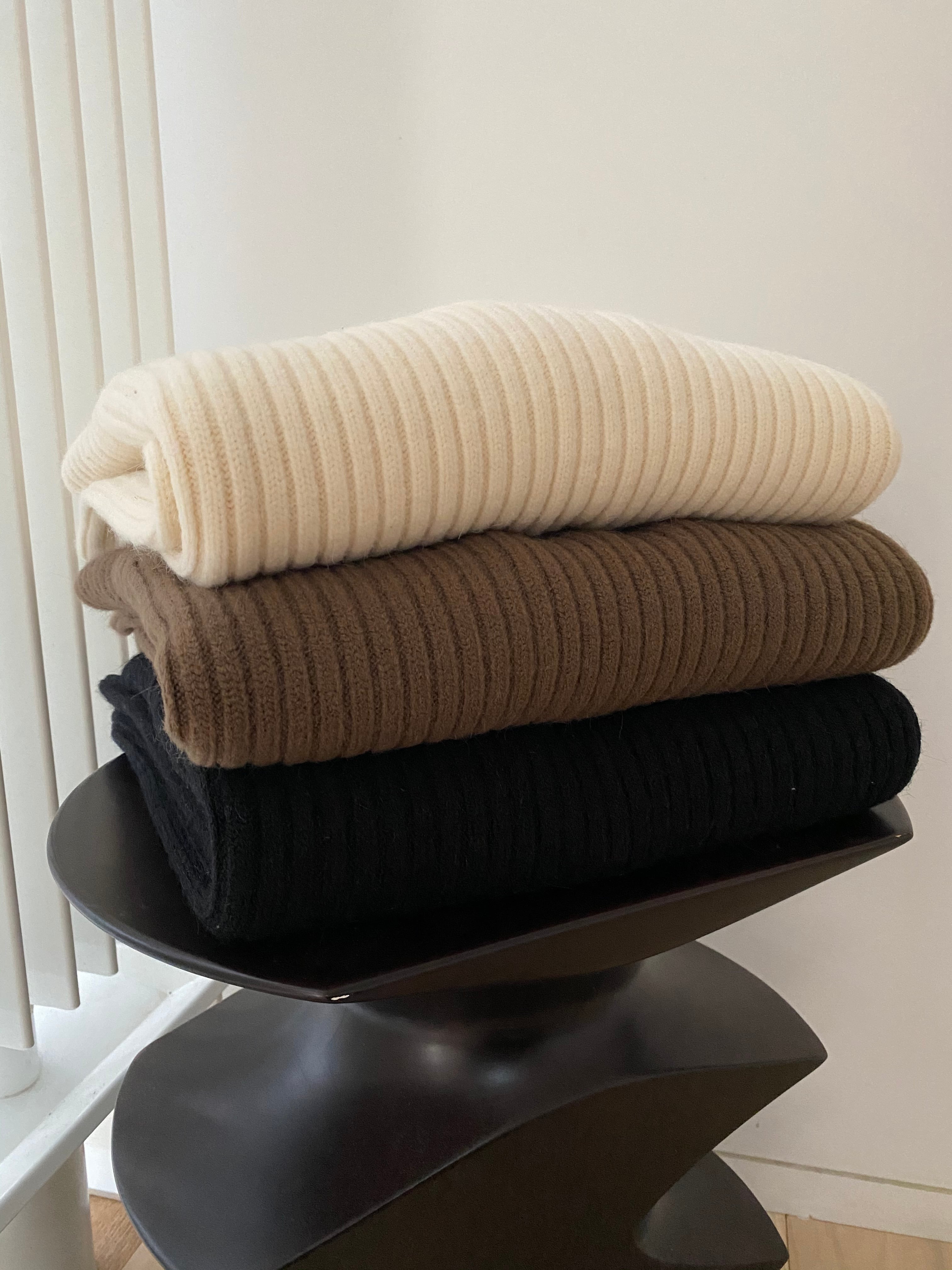 ベーシックなボトルネックのリブニット。