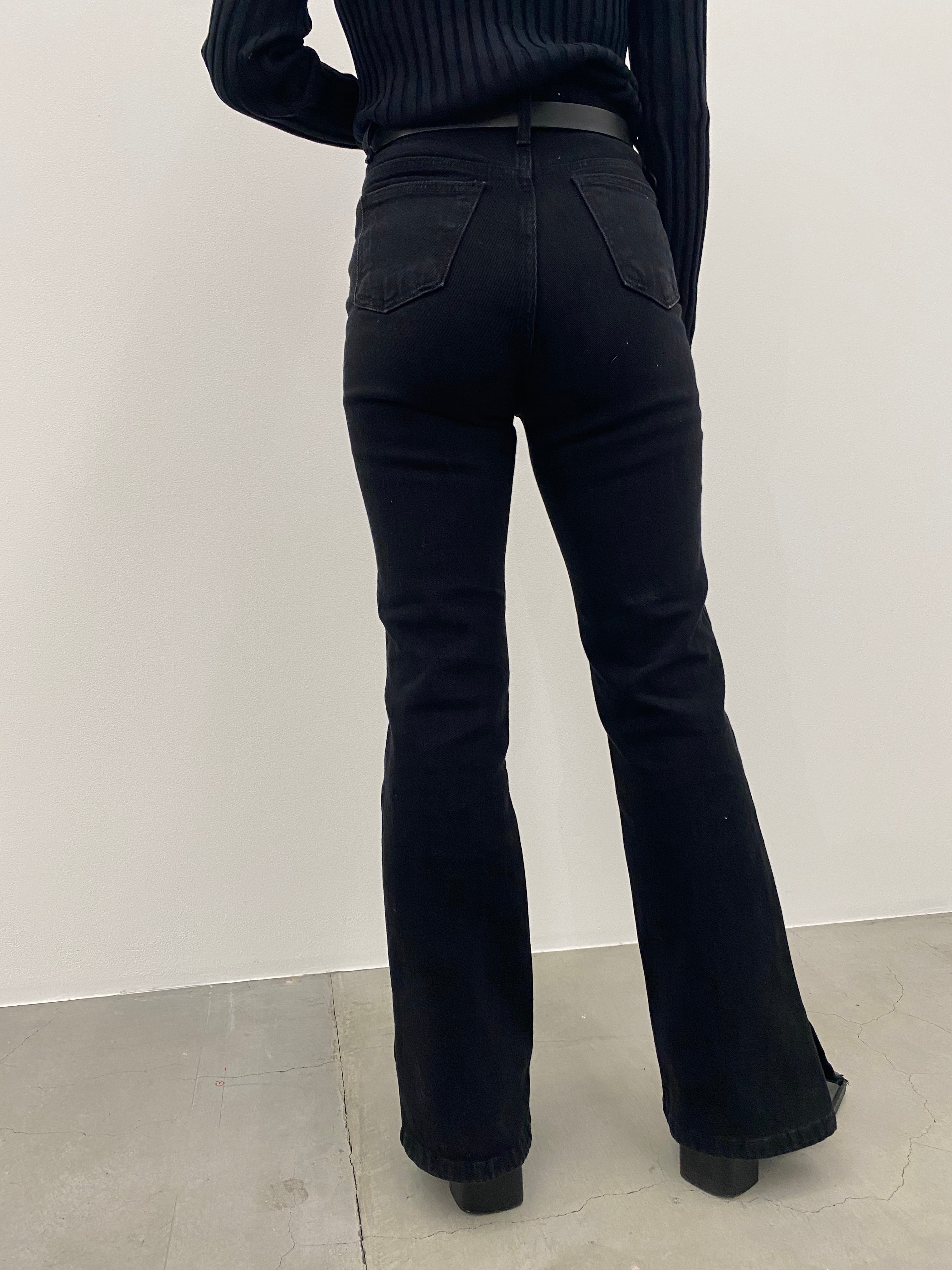 ハイライズでサイドにさりげないスリットの入ったブーツカットデニム。