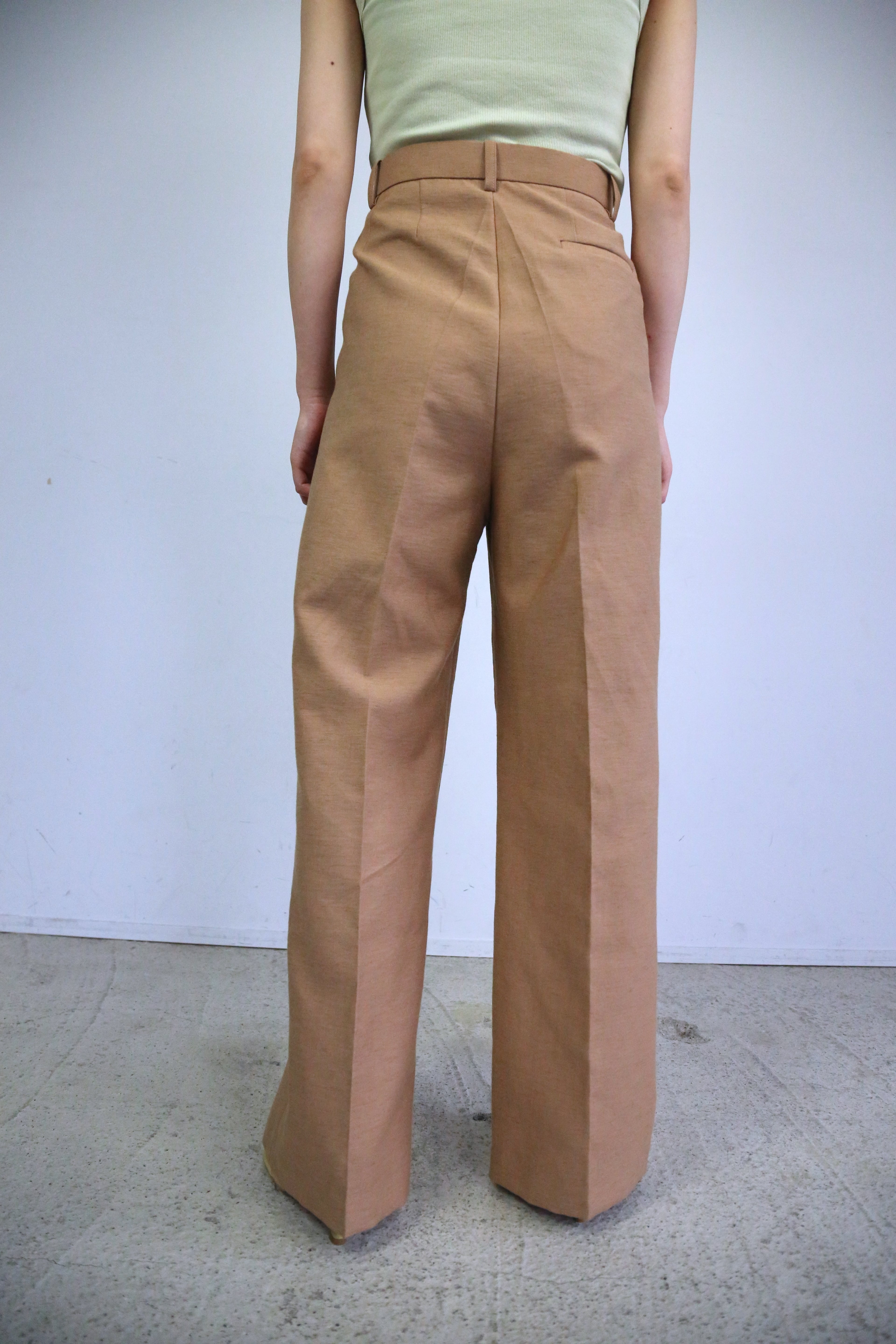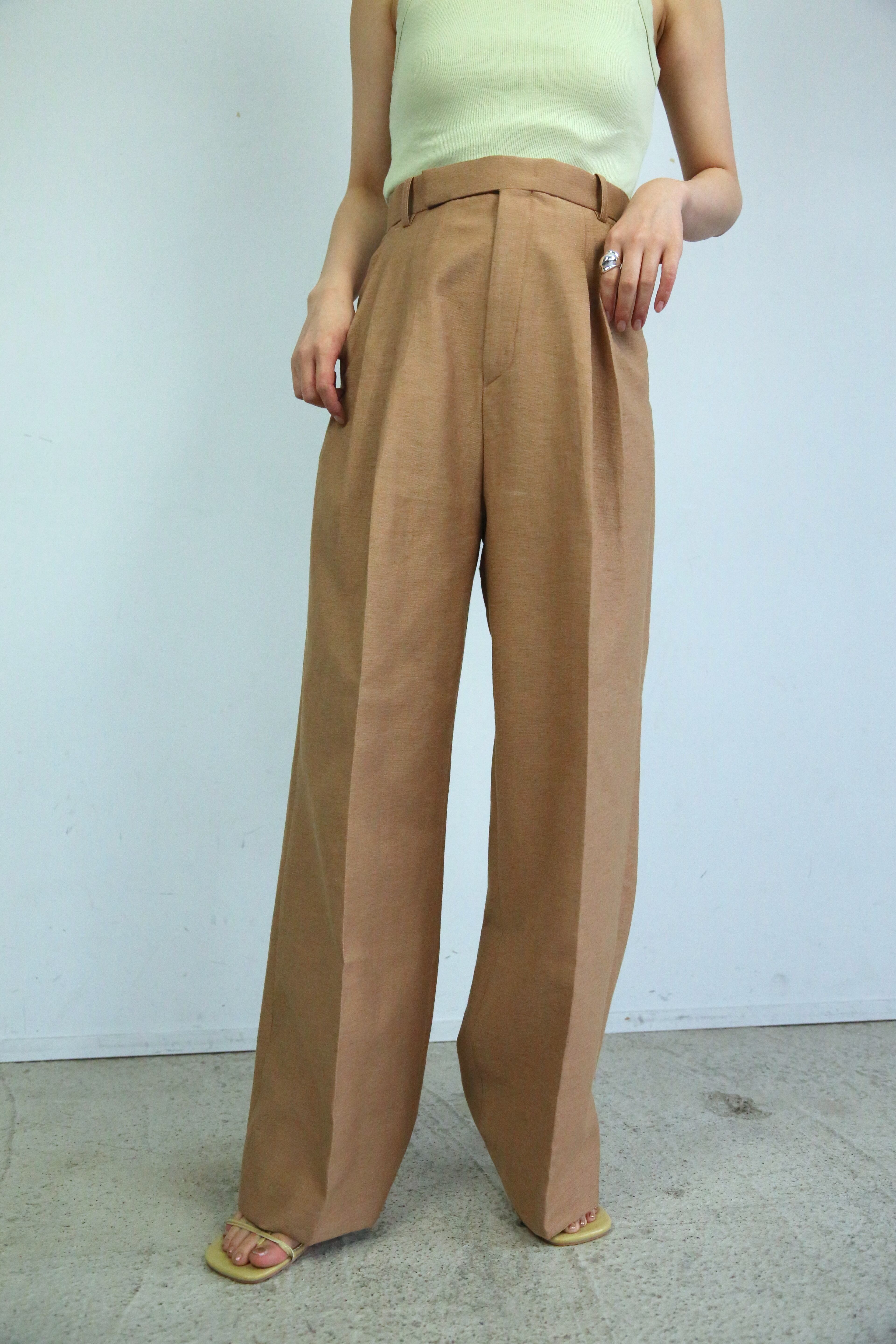 麻混の軽い生地なのでこれから時期には丁度いいパンツです。ストンと落ちるワイドなシルエットとセンタープレスがきれいめな印象にしてくれます。