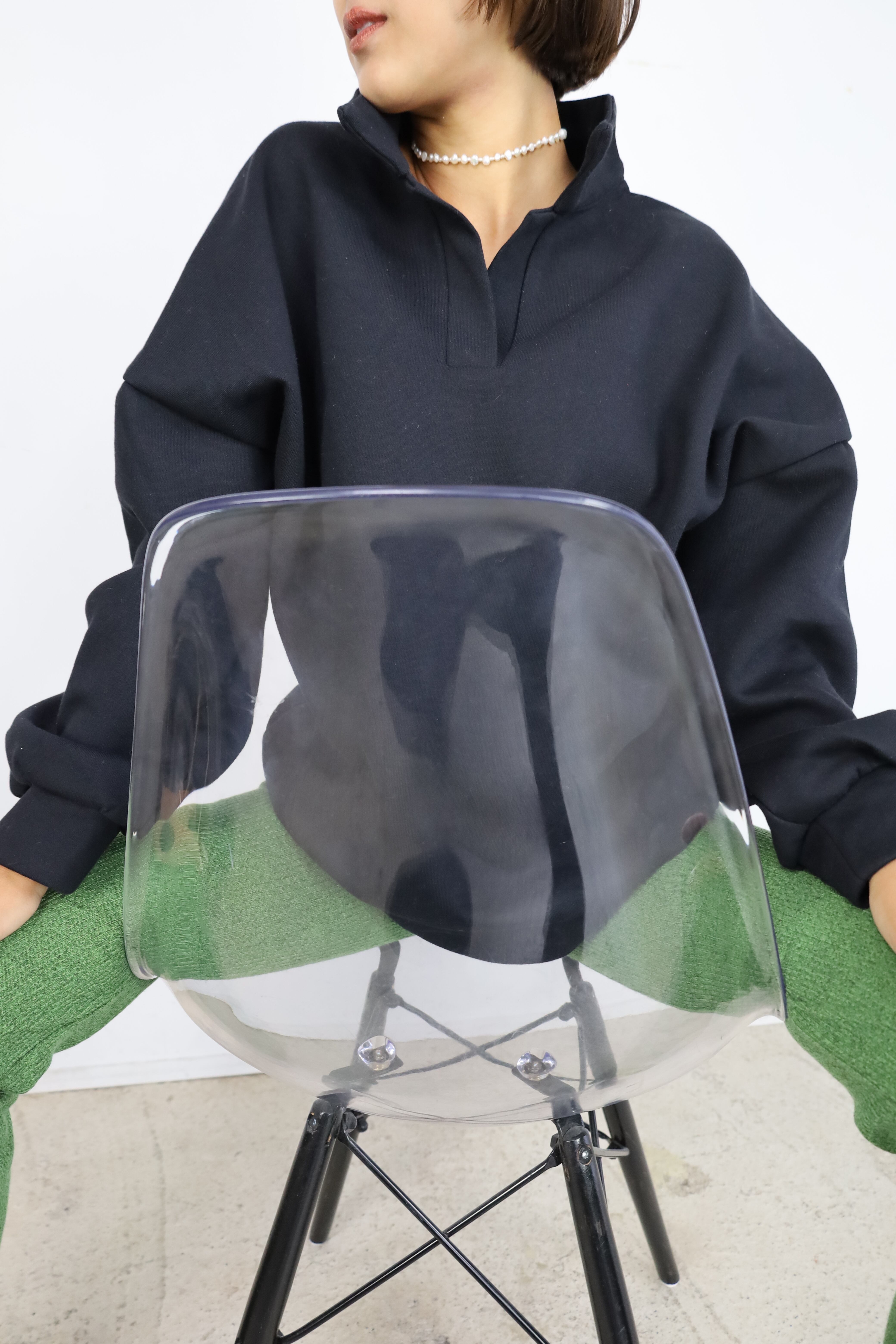 少し張り感のある素材で、袖巾も大きめで丈もお尻まで隠れるゆったりとしたシルエットです。